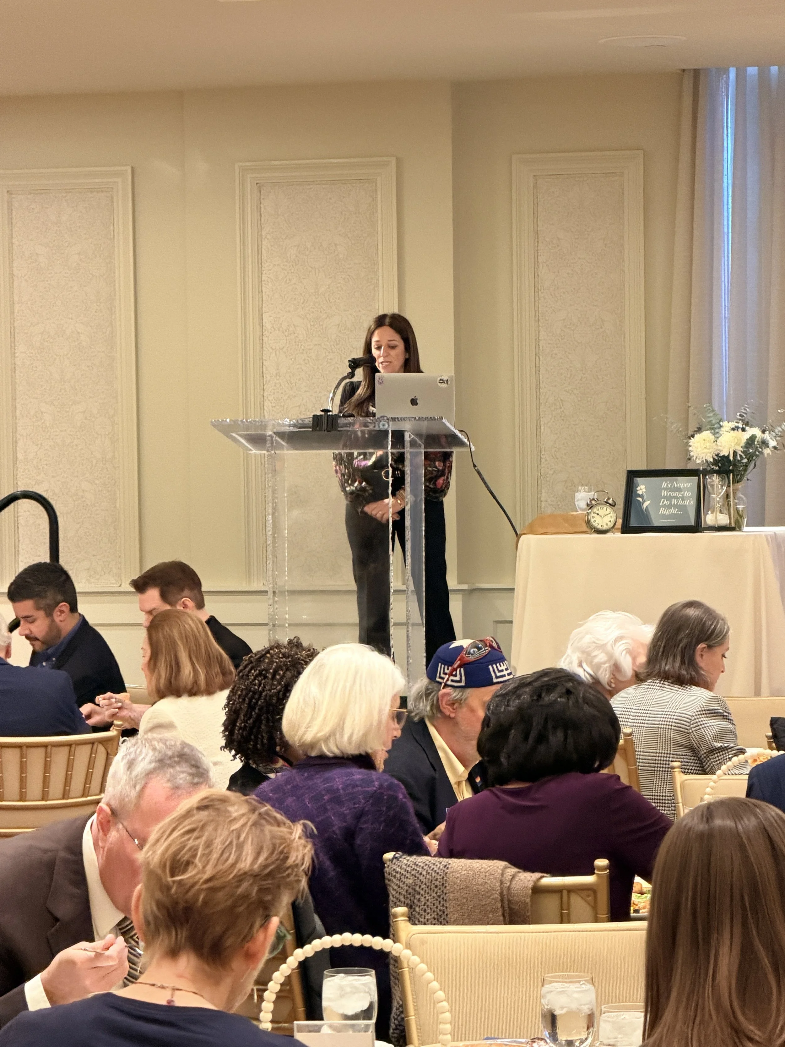 Lindsay’s given this talk to 30+ organizations including various Federations, NAVI, ADL, Kesher Forum and many temples and synagogues in markets like Louisville, Las Vegas, Philadelphia, Oklahoma City, Chicago, Detroit, New York, Baltimore, Minneapolis. The goal with this talk is to arm members of the community (Jewish AND non-Jewish) with the tools and inspiration to stand up and always do what is right.